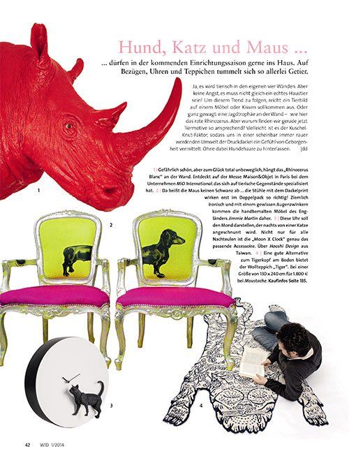 Me fascina como esta casa francesa ha reinterpretado el concepto del “trofeo de caza”: usando fibra de vidrio, resinas y lacas, esculpen gorilas púrpuras, felinos azul eléctrico, osos amarillos y hasta elefantes rosas. Sin duda, son un básico para quienes buscamos introducir el reino animal en nuestra decoración ...