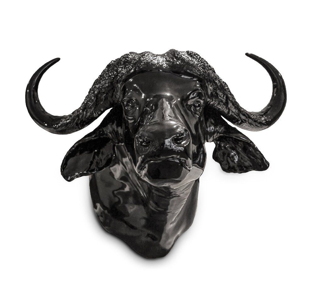 Tête de Buffle. Finition possible en peinture époxy, flocage. Pointe en peinture époxy, flocage ou à la feuille d'Or, argent.