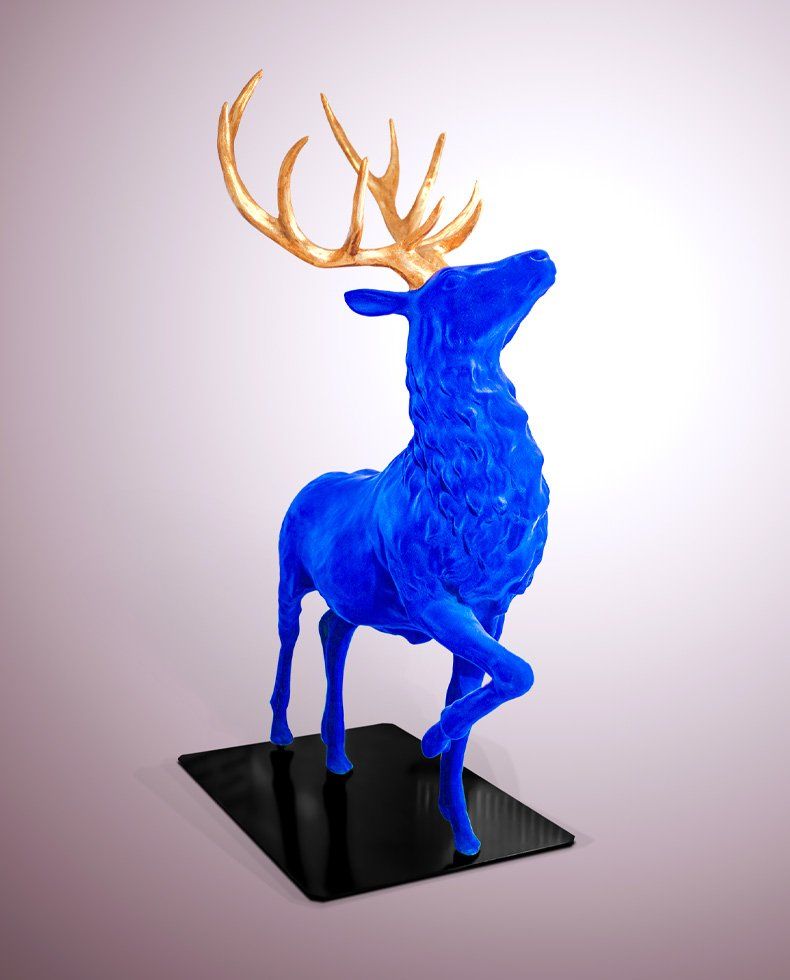 Tête de cerf - Cerf sortant du mur - Cerf sur base métal. Finition possible en peinture époxy, flocage. Option Bois à la feuille d'Or ou argent.